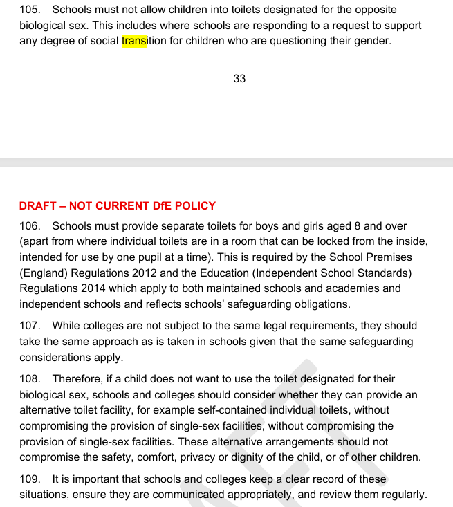 - Provide suitable changing/shower facilities for pupils aged 11+ at the start of the school year, segregated by biological sex. Must not allow undressing in front of opposite-sex children, with no exceptions for social transition.