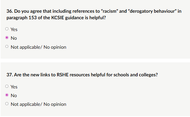 My response: “KCSIE must explicitly prohibit all forms of social transition in schools/colleges; no name/pronoun changes, no “identifying as” opposite sex, no stealth arrangements. This is essential to safeguard children from sex deception and ideological harm. Biological sex is immutable/binary (Equality Act 2010, Supreme Court rulings). Allowing any transition contradicts Cass Review evidence: social transition is non-neutral/active intervention and risks (e.g., increased medicalisation pre-puberty, stealth vulnerabilities, puberty anxiety). It can normalise mutable sex myths, confuse peers, enable bullying, and misdirect support from real issues (trauma, neurodiversity). Add mandatory: Zero school-facilitated transition; affirm biological sex only. Immediate parental notification of concerns (unless greater harm risk). Clinical referral without school involvement in identity affirmation. Explicit ban on any facility/sports exceptions that compromise single-sex rules. This protects all children’s welfare, privacy, and reality-based development, prioritising evidence over ideology. Current flexibility risks harm, no child should be forced to lie, remove the above for true safeguarding.”