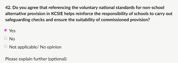 Including reference to the voluntary national standards for non-school alternative provision in KCSIE helps strengthen safeguarding oversight for children educated outside traditional school settings. These standards provide a clear framework for quality assurance, supporting schools and local authorities in selecting safe and appropriate providers.