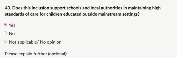 My response: “Expanding the list of additional barriers that children with SEND can face is helpful and aligns well with the child’s best interests. Children with special educational needs and disabilities are disproportionately vulnerable to safeguarding risks, including neglect, abuse, bullying, exploitation, and poor mental health outcomes. An expanded list could usefully include barriers such as: