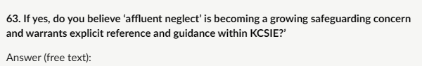My response: “Yes, ‘affluent neglect’ is a growing safeguarding concern and should be explicitly referenced and given guidance in KCSIE. This is increasingly reported in safeguarding literature and clinical settings. It is under-recognised because it does not fit traditional neglect stereotypes. Yet the impact is serious: attachment difficulties, poor emotional regulation, vulnerability to exploitation (grooming, county lines, online harms), and long-term mental health issues. KCSIE should include it across all settings, especially independent/private schools, where affluent neglect may be more prevalent. Guidance could cover: Indicators (e.g., frequent unaccompanied travel, excessive independence too young, emotional flatness, over-reliance on paid carers). Risk of assuming “they’re fine because they’re wealthy”. Need for DSLs to consider affluent neglect in referrals, early help, or multi-agency discussions. Links to mental health/safeguarding intersections (already in KCSIE) without over-medicalising. Explicit inclusion would ensure no child is overlooked due to socioeconomic bias, reinforcing that neglect is about emotional/supervisory failure, not just material deprivation.”