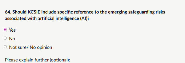 We welcome your views on how KCSIE can best support staff in understanding and responding to the evolving risks posed by AI technologies.