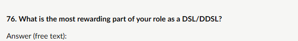 My response: “Not applicable: I am not a DSL or deputy in a school/college. However, from my own experience in safeguarding leadership roles in care services, the most rewarding part was always seeing the real, lasting difference made by timely and decisive action: a child who was withdrawn, frightened, or self-harming beginning to feel safe, rebuild trust, engage positively, and start to recover after years of hidden abuse or neglect. Knowing your intervention; whether a referral, safety plan, or multi-agency coordination, helped stop harm, gave the child a voice, and changed their future trajectory is profoundly fulfilling. Those moments make every difficult conversation and emotional weight worthwhile.”