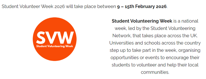 Student Volunteering Network (2026) Student Volunteering Week. Available at: https://studentvolunteeringnetwork.com/student-volunteering-week (Accessed: 10 February 2026).