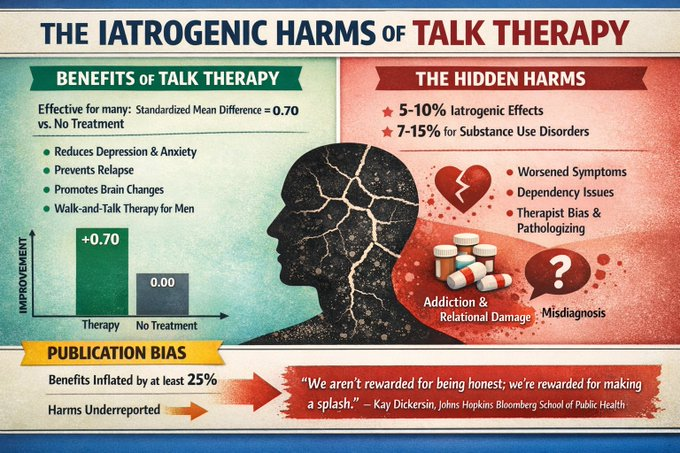 However, iatrogenic harms, unintended negative effects, affect around 5-10% of cases, with higher rates (7-15%) for substance use disorders, including worsened symptoms, dependency, or relational damage from pathologising normal emotions or therapist biases. Publication bias may overstate benefits by at least 25%, and harms like emotional escalation or misdiagnosis are under-researched. Of course, publication bias isn’t limited to depression treatments. It’s a widespread problem throughout the research world, says Kay Dickersin, a professor of epidemiology at Johns Hopkins Bloomberg School of Public Health.