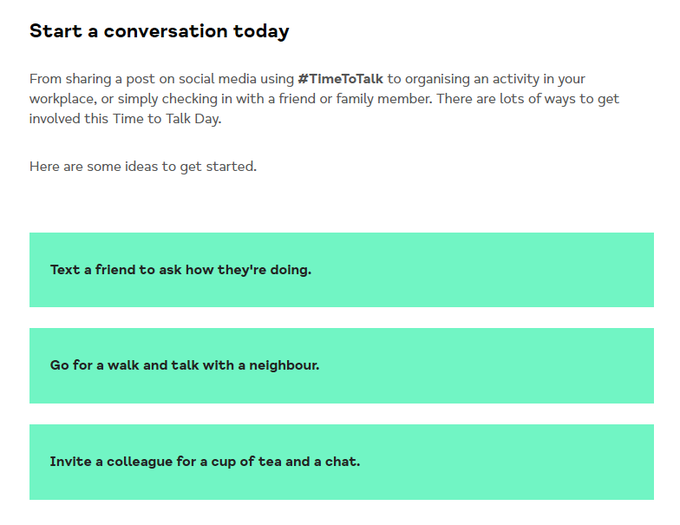 • Time to Change (n.d.) Summary of impact and learning. Available at: https://www.time-to-change.org.uk/sites/default/files/TTC_Phase2_legacy_Time_To_Talk_Day.pdf (Accessed: 5 February 2026).